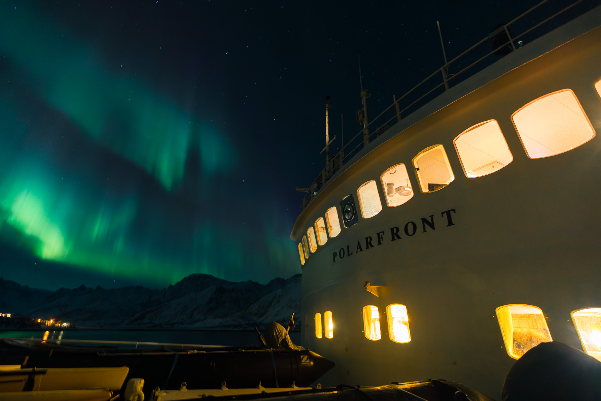 Auch von einem Schiff aus kann man mit etwas Glück gute Polarlichter Fotografieren.