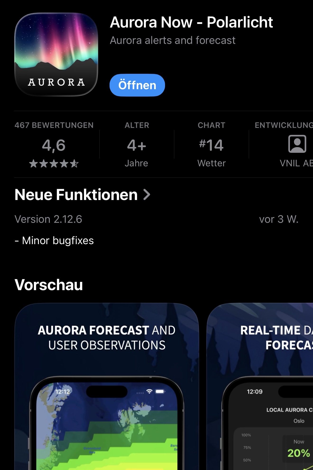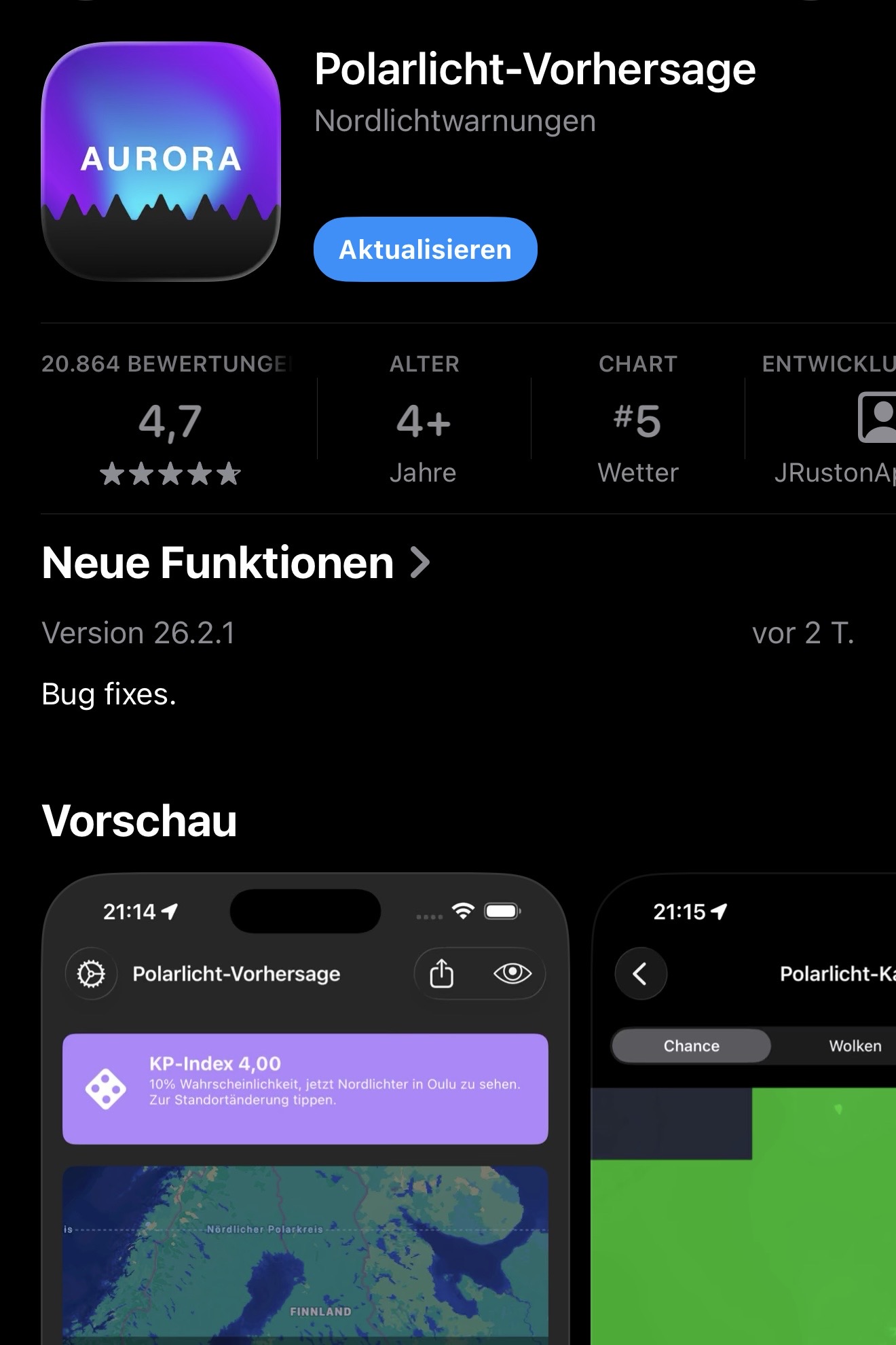 Im App- & Google-Play-Store gibt es unzählige kostenlose Apps zum tracken von Polarlichtern.